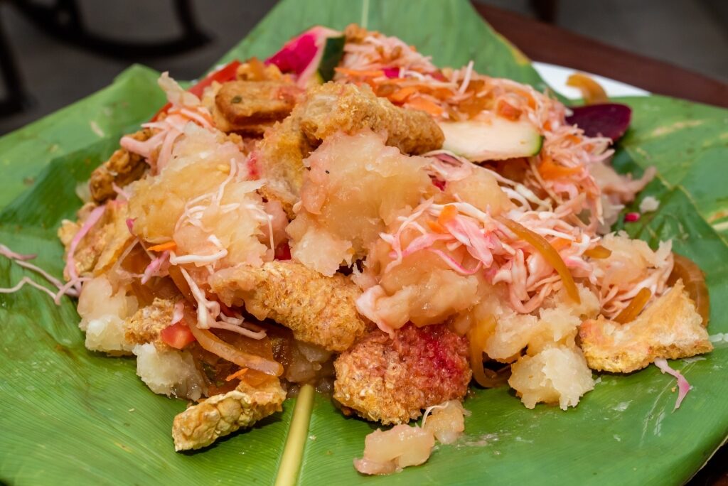 Questo piatto a base di yuca viene spesso servito come contorno o antipasto. La radice di yuca viene bollita e combinata con succo di limone e cavolo. È condito con chicharron di maiale, croccante e fritto e una salsa di pomodoro piccante. Come condimento è possibile aggiungere formaggio grattugiato e altro cavolo.