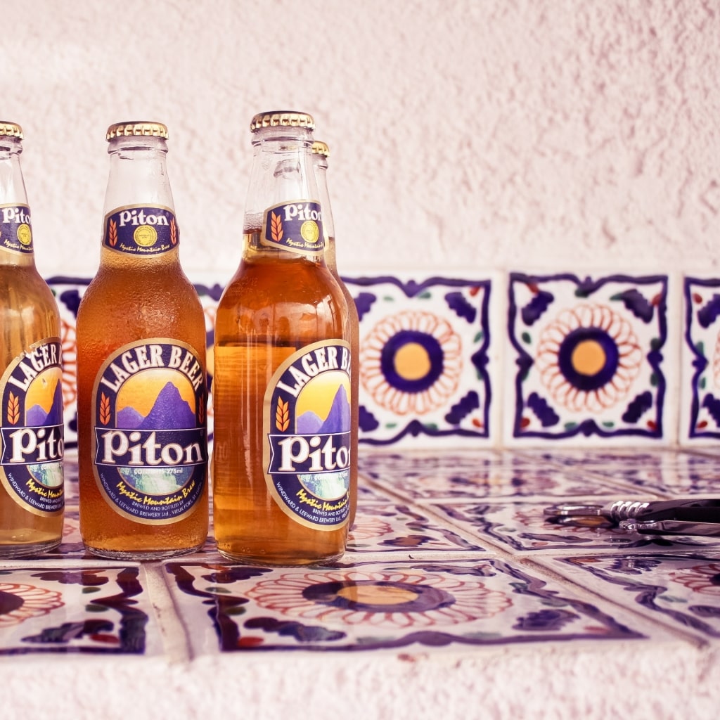 Dopo una giornata trascorsa a spuntare la tua lista di cose da fare a St. Lucia, stappa una birra Piton e sorseggiala in paradiso. Questa birra locale è una pilsner frizzante e leggera ed è la marca più popolare dell'isola. Il suo nome rende omaggio ai Pitons, le cime gemelle delle montagne che definiscono il paesaggio di St. Lucia.