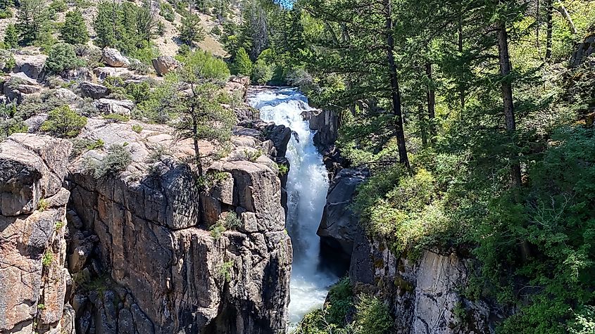 Vista di Shell Falls nella foresta nazionale di Bighorn vicino a Buffalo, Wyoming.