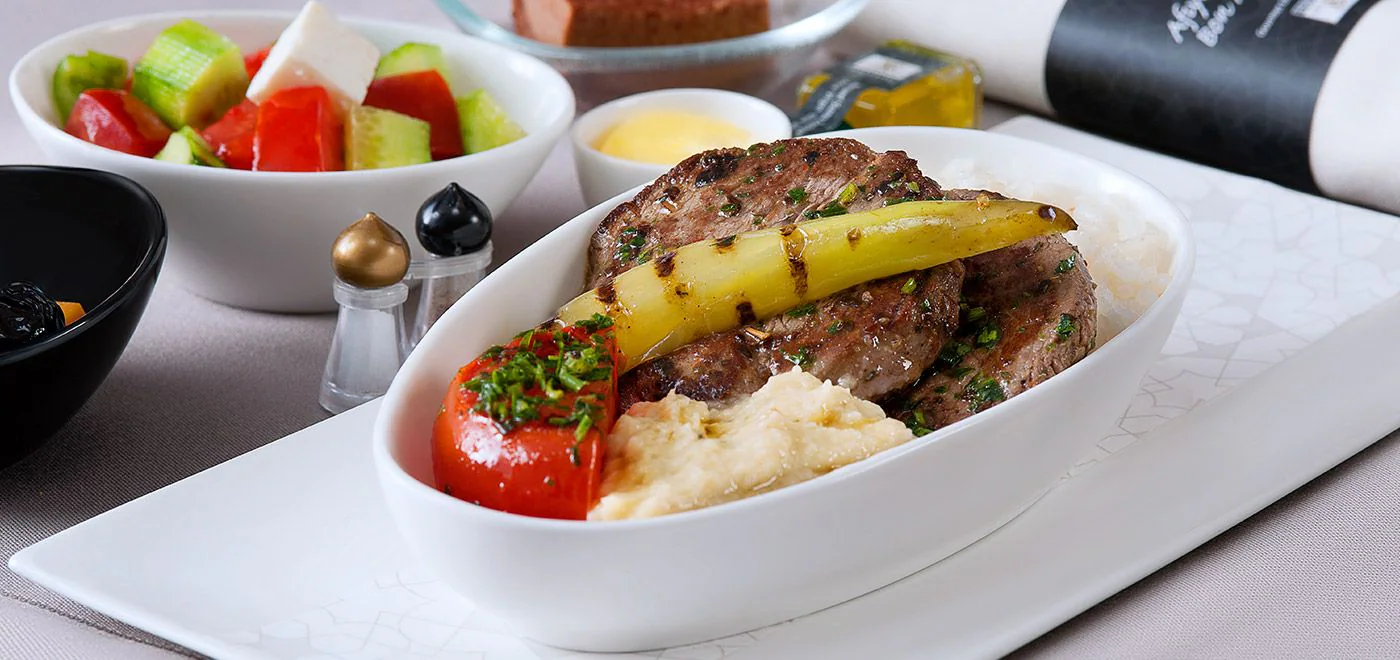 Clientes de todas as classes podem até reservar e ajustar o prato principal 48 horas antes do voo. Os passageiros da classe executiva recebem uma bebida de boas-vindas e podem escolher entre uma ampla variedade de pratos, incluindo omeletes caseiros, aperitivos regionais turcos e kebabs grelhados. Menos carboidratos e mais alimentos ricos em vitaminas e proteínas também tornam esta experiência gastronômica mais saudável.