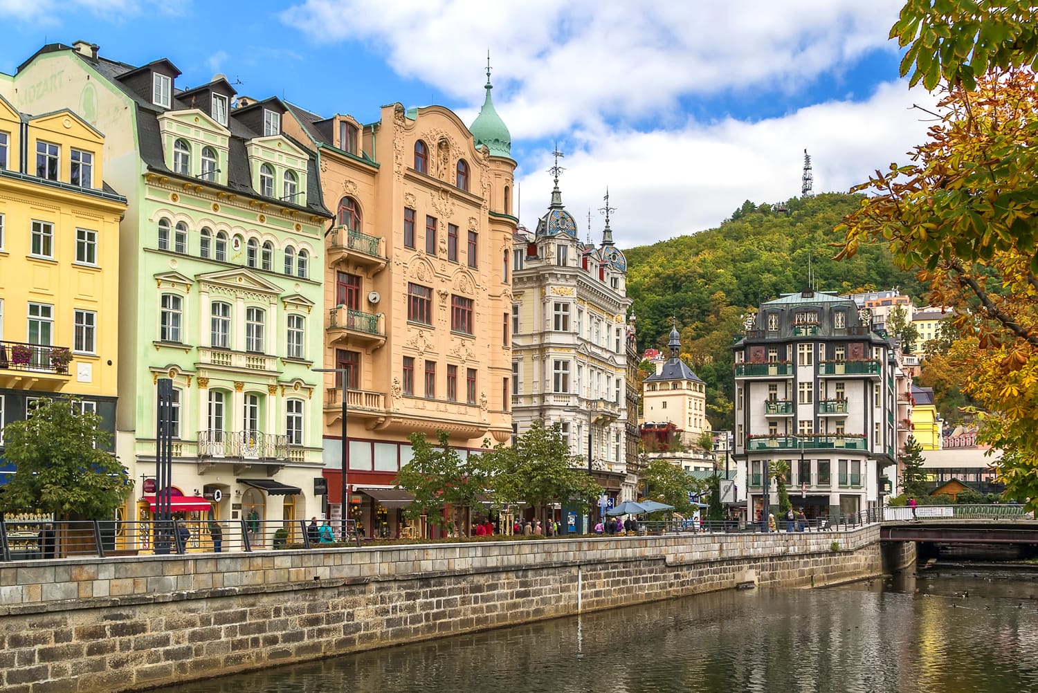 Para uma cidade que rivaliza com a beleza de Praga, não procure mais, Karlovy Vary, outro dos melhores passeios de um dia saindo de Praga. Entre suas muitas fontes termais e resorts de spa, a majestosa zona ribeirinha da cidade, com intermináveis fileiras de grandes edifícios, é o que a torna tão especial.