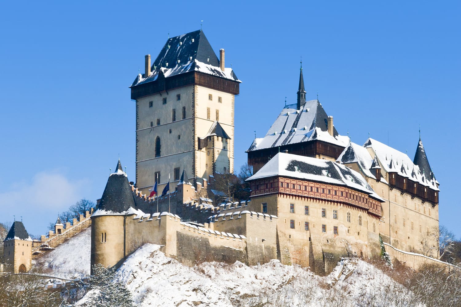A República Checa está repleta de castelos fantásticos para visitar, e um dos melhores é certamente o Castelo Karlštejn. É também uma das viagens de trem mais comuns e fáceis saindo de Praga. Uma viagem a este castelo, com vista para a pequena cidade de Karlštejn a partir do seu cenário épico entre colinas de floresta, é repleta de história e paisagens deslumbrantes.