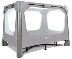 Dos criadores do mamaRoo, o 4moms Breeze Go Portable Travel Playard é um playard fácil de usar para bebês com menos de 30 quilos. Ele abre e fecha em apenas um passo e pode ser facilmente movido pelo seu quarto de hotel ou pelo parque. O colchão é confortável e fácil de limpar com pano húmido. Este playard pesa 23 libras e mede 43" x 30" x 29". A bolsa de viagem simplifica o transporte, quer você esteja viajando pela Tasmânia ou visitando o México. Sua configuração simples torna o 4moms Breeze Go Portable Travel Playard um favorito dos pais em todos os lugares.
