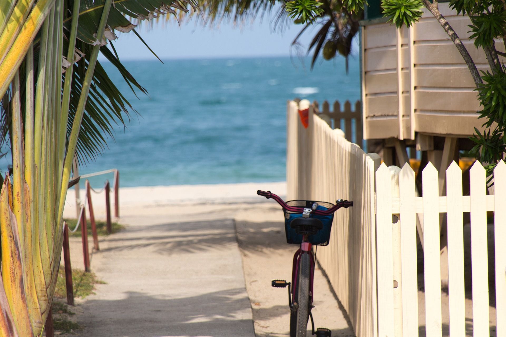 Bicicleta estacionada em um resort à beira-mar em Florida Keys
