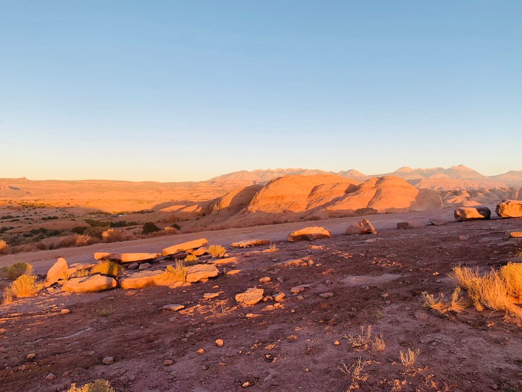 Moab e Salt Lake City ficam a cerca de 4 horas de carro uma da outra, se você navegar direto de uma para a outra. No entanto, você definitivamente deseja parar e explorar as paisagens deslumbrantes de Utah. A paisagem ao longo do caminho dá vontade de pegar sua garrafa de água – indispensável no ambiente quente e desértico – e caminhar pelas formações rochosas vermelhas.