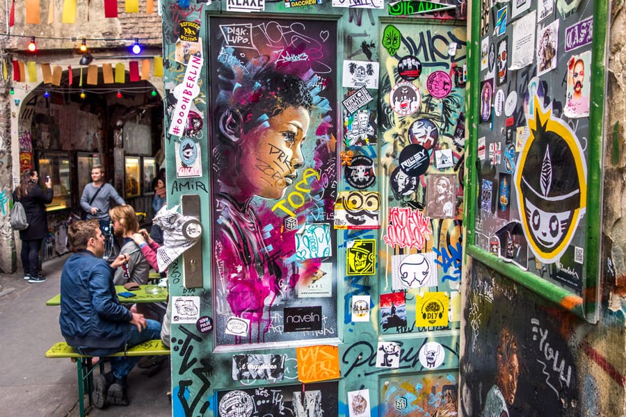 Escondido em um beco na Rosenthaler Strasse, você encontrará o paraíso dos amantes da arte de rua. Cada centímetro do espaço está literalmente coberto de arte. Com estilos que vão desde graffiti a adesivos e peças de grafiteiros famosos como Jimmy C, esta atração é definitivamente um destaque das melhores coisas para fazer em Berlim. Não deixe de visitar oCentro Anne Frank,Blindenwerkstatt Otto Weidtbem como a escadaria coberta de graffiti, que também proporcionará uma adição única à sua visita a Berlim.