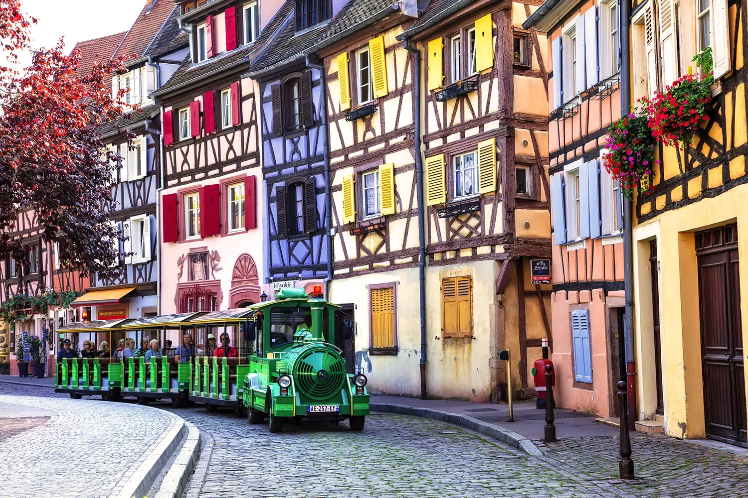 Se você está se perguntando o que fazer em Colmar quando se cansar de caminhar, considere conhecer o centro histórico de um trenzinho!