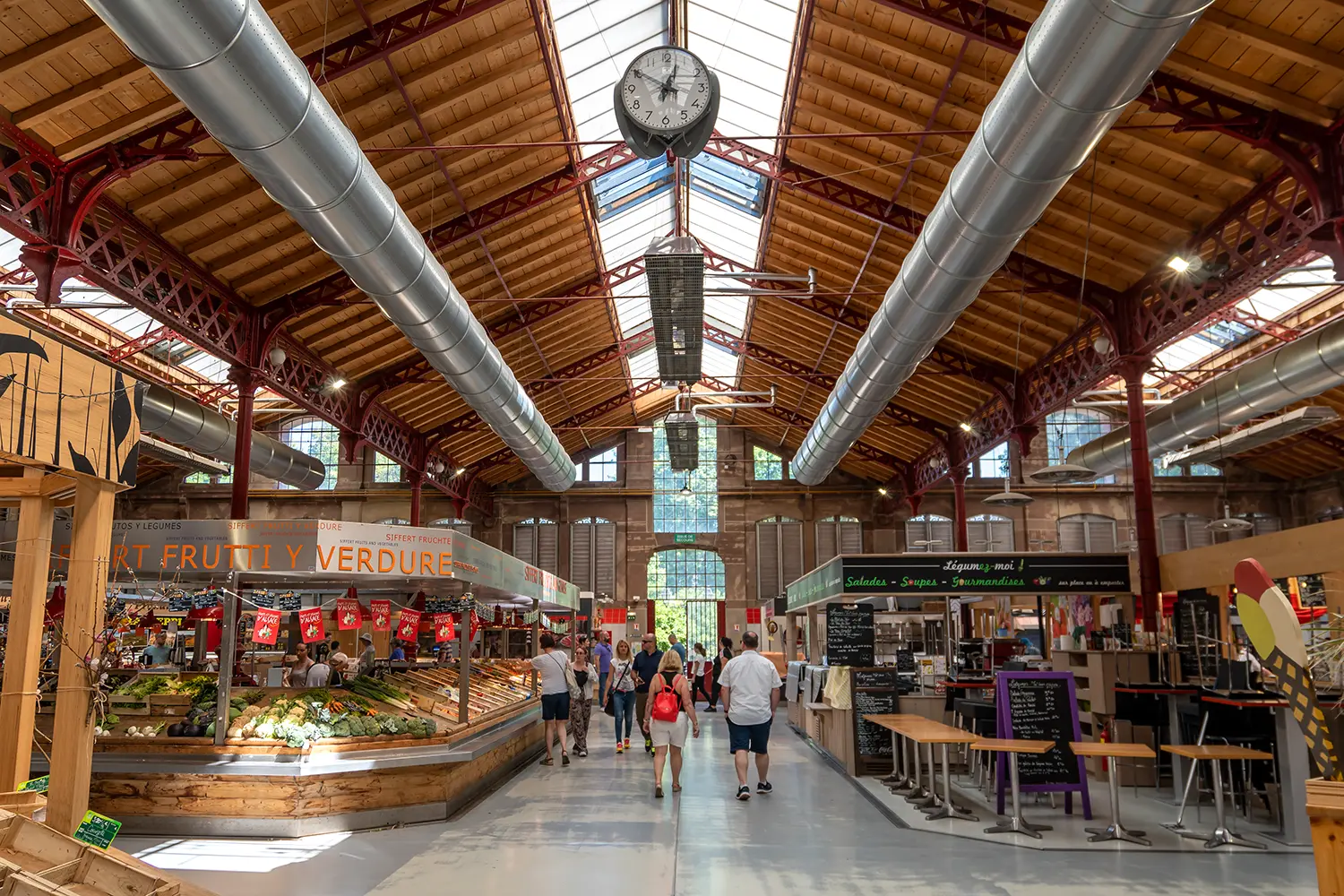 Passear por um mercado fechado é uma atividade clássica em Colmar e na França em geral, e o Marché Couvert (Mercado Coberto) de Colmar é o lugar perfeito para essa experiência. Suas barracas oferecem verduras frescas, queijos, carnes, assados e outros produtos. Você pode saborear petiscos e café enquanto admira os arcos de ferro fundido e as paredes de pedra deste edifício do século XIX.