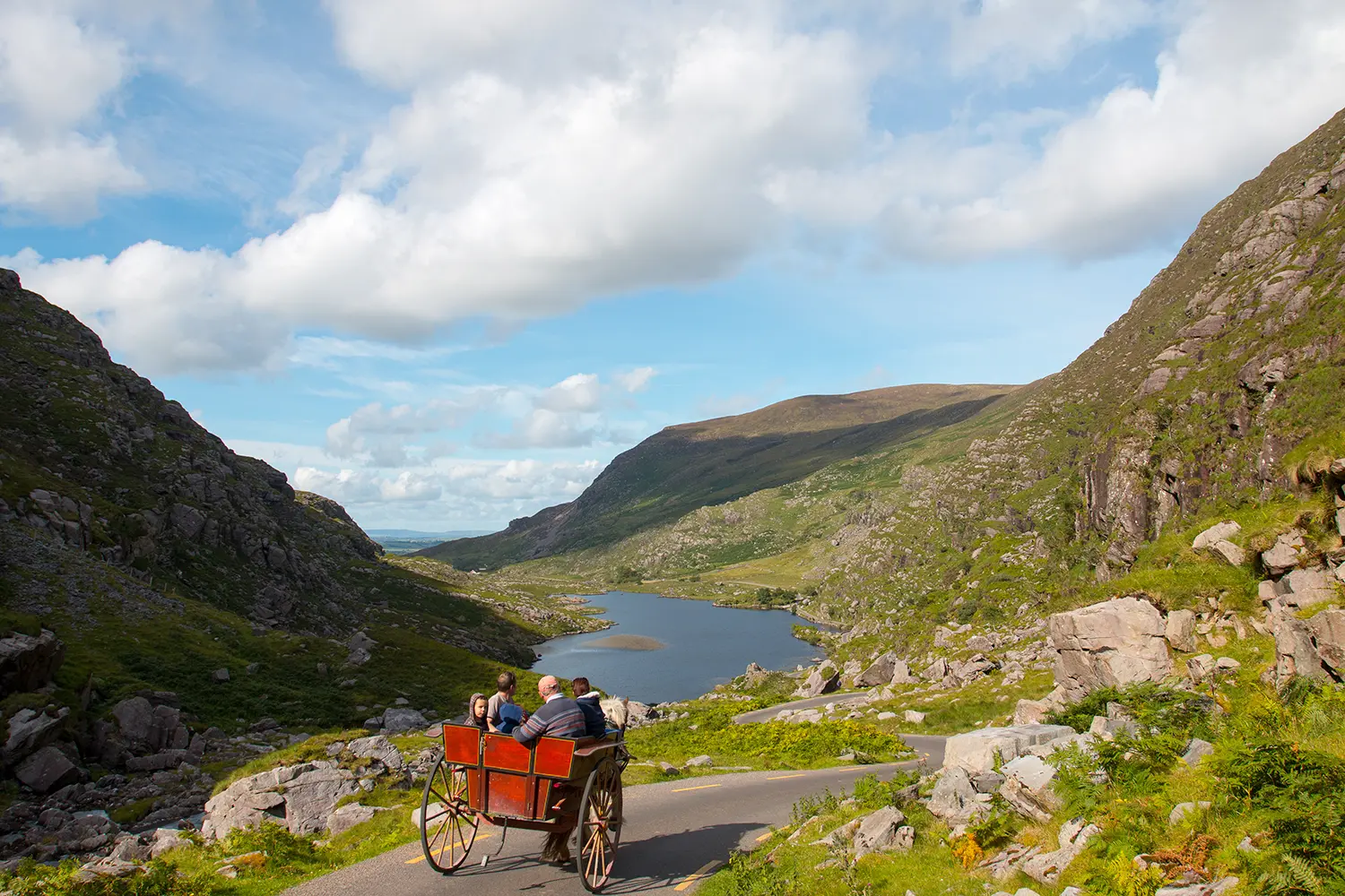 The Gap of Dunloe é uma das mais belas paisagens naturais perto de Killarney. Pode ser explorado de várias maneiras, seja a pé, de carro, de carruagem puxada por cavalos ou caminhando pelas serras do vale.
