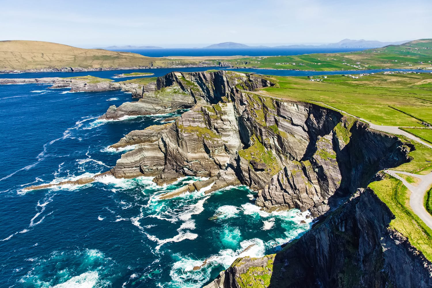 Outra atração popular na Península de Dingle éPíer Dunquin. Esta linda área cênica possui uma estrada sinuosa no cais com vista paraIlha Blaskete as bordas dos penhascos rochosos da península. Este é um ótimo local para passear e tirar algumas fotos realmente encantadoras do interior da Irlanda. Você também pode caminhar pela estrada por alguns minutos paraO Centro Blasket, onde encontrará um fantástico museu sobre a vida de quem viveu remotamente, o património da zona e o folclore local. Você também pode reservar uma passagem de balsa aqui para a Ilha Blasket.