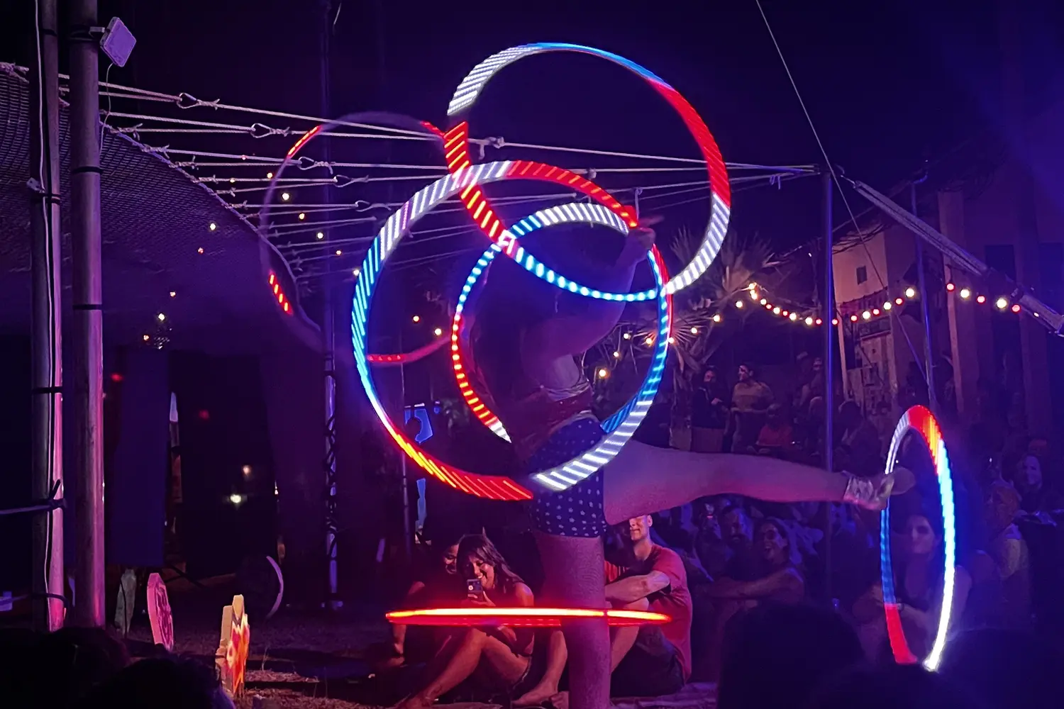 A noite começa no Choppers com mais de 200 outros crawlers que farão o seu caminho por volta das 19h15. ao Queen’s Cabaret para assistir ao deslumbrante show de drag. Este é um show condensado especial apresentado especificamente para o pub crawl, então é muita energia e muita diversão! Não tenha medo de ser voluntário ou participar dos jogos também, pois você pode ganhar alguns prêmios incríveis, como vale-refeição ou aluguel de paddleboard por uma hora. Depois do Queen's Cabaret, o rastreamento geralmente segue para o AC Bar Beach Club e o Lotus Bar para shows de fogo, beer pong, dança e alguns jogos divertidos para conhecer outros viajantes. Muitas doses gratuitas são distribuídas durante a noite, bem como um cartão de desconto para usar pela ilha depois!