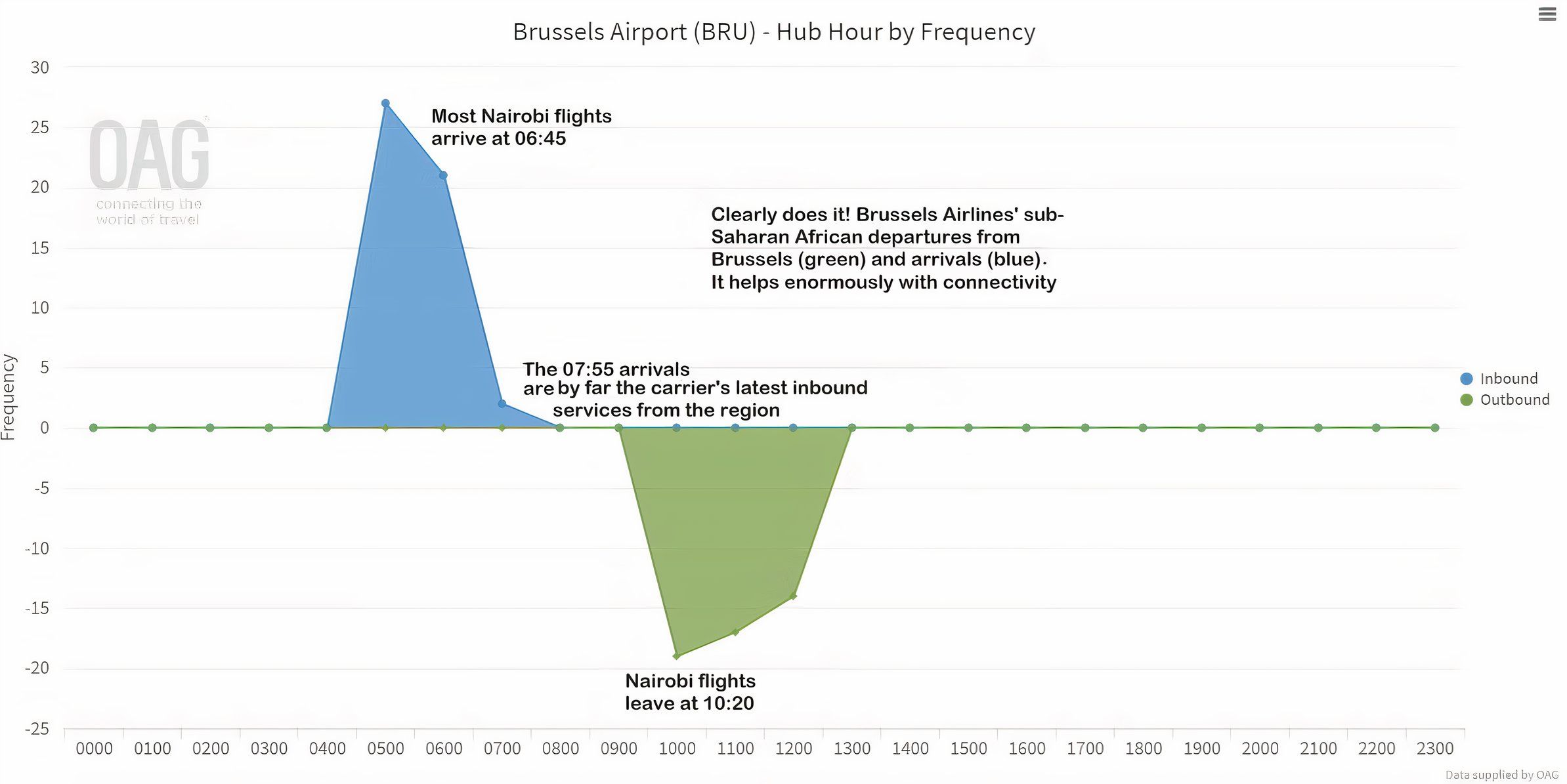 Juntamente com Accra, Bangul, Entebbe, Monróvia e Freetown, Nairobi cai no campo anglófono. A ausência de Lagos e Joanesburgo, esta última agora não servida pela Air Belgium, chama a atenção, mas a Lufthansa provavelmente mantém a Bruxelas Airlines de fora.