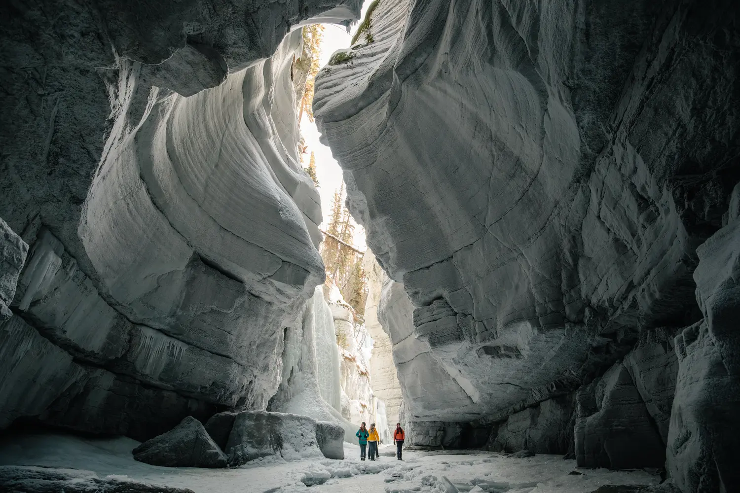 Comece sua primeira manhã em Jasper com uma exploração revigorante das regiões cobertas de geloCanyon Maligne. Você pode optar por embarcar em um passeio autoguiado pelas trilhas do Maligne Canyon, maravilhando-se com as cachoeiras congeladas e as impressionantes formações de gelo vistas de cima, ou, para uma aventura envolvente, você pode reservar esteExcursão de descoberta da caminhada no gelo do Maligne Canyon. O passeio levará você a uma aventura de três horas pelas maravilhas geladas do cânion, onde guias experientes fornecerão informações fascinantes sobre as maravilhas geológicas que moldam esta paisagem de inverno. Você atravessará o fundo congelado do cânion e testemunhará a beleza inspiradora das esculturas de gelo e das cachoeiras congeladas de Maligne, o que contribui para a foto mais épica das férias (temos certeza de que seus amigos e familiares ficarão com ciúmes)!