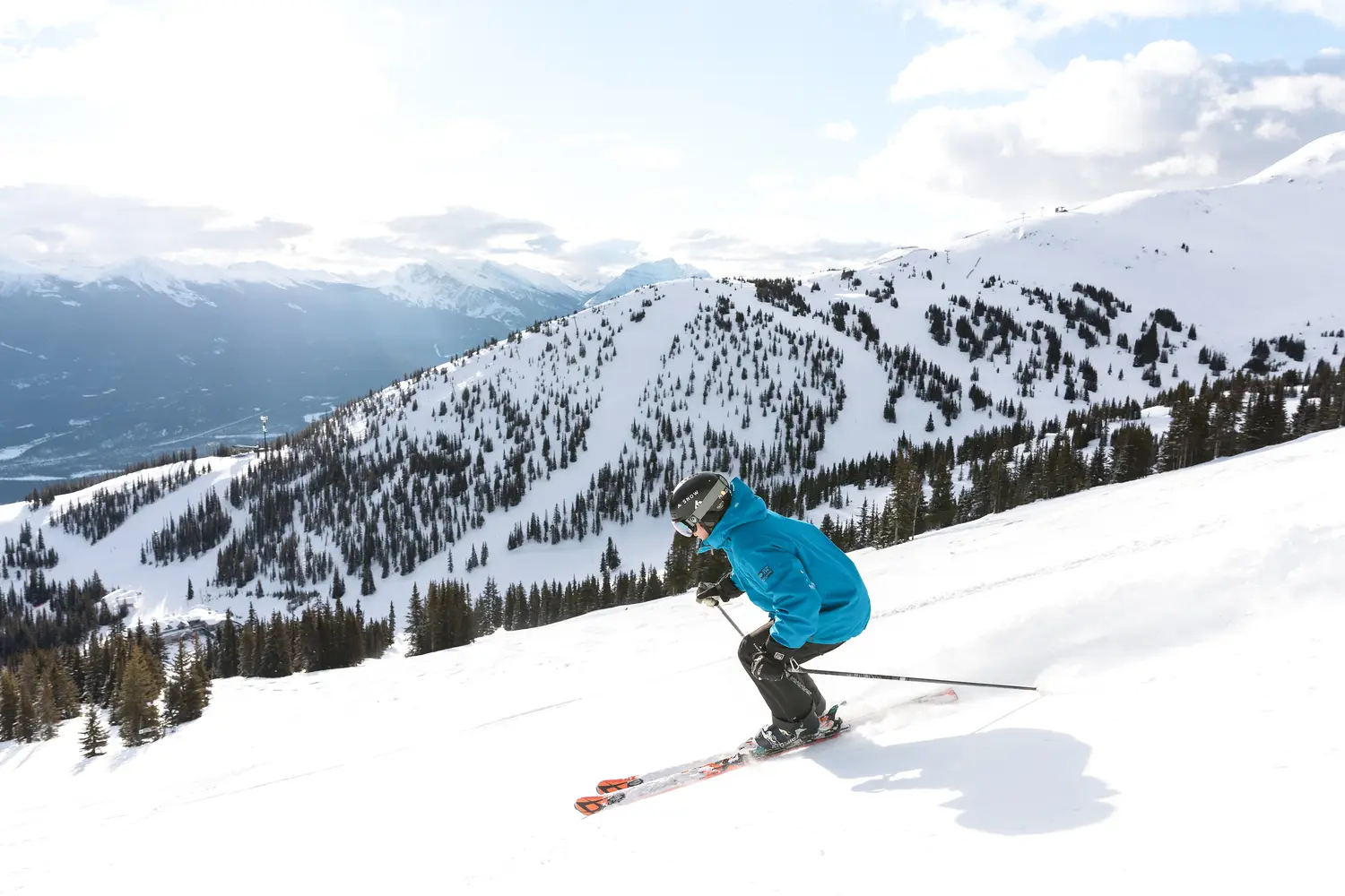 Comece o seu dia com uma caminhada encantadora peloVale dos Cinco Lagos, onde uma trilha circular de 4,5 quilômetros revela um país das maravilhas do inverno com lagos congelados, sempre-vivas cobertas de neve e vistas deslumbrantes das montanhas. O que realmente diferencia esta área são os distintos tons turquesa dos lagos congelados, juntamente com os picos nevados circundantes. A trilha leva aproximadamente uma hora e meia a duas horas para ser concluída, mas o caminho pode ficar bastante gelado, por isso recomendamos boas botas de caminhada e bastões de gelo. Considere levar um lanche e uma garrafa térmica com chocolate quente para saborear noCadeiras VermelhasnoTerceiro Lagojá que a vista vale uma pausa de 20 minutos. Você também pode levar um almoço para desfrutar com vista!