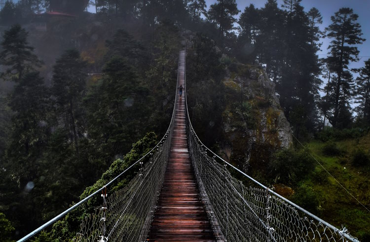 Uma ponte suspensa perto da aldeia de Benito Juárez. Crédito da imagem: Joe Furey