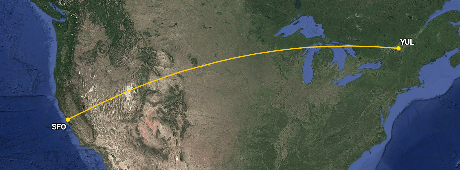 Depois de abril de 2024, a Air Canada teve voos duplos diários entre maio de 2024 e outubro de 2024, com partidas triplas diárias de Montreal para São Francisco em junho de 2024. Durante a temporada de verão de 2025, a transportadora canadense planejou voos duplos diários na rota entre maio e outubro, nomeadamente os voos AC761 e AC763. Ambos estão programados para serem operados pela