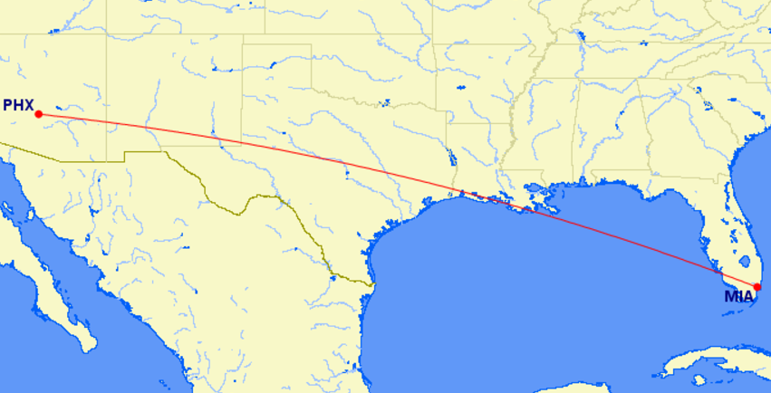 A American Airlines detém o monopólio da rota para MIA, sendo a única operadora. No entanto, existem vários outros serviços diretos de PHX para o Sunshine State, incluindo: