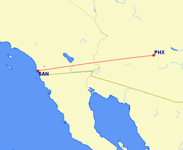 O voo diário 737 MAX 8 da American Airlines para San Diego é entre Phoenix e o sul da Califórnia. Com apenas 304 milhas, esta rota é a mais curta nesta análise, levando uma hora e 15 minutos de portão a portão. Para dezembro, 31 voos serão operados com a variante Boeing, com a transportadora oferecendo 5.332 assentos ao longo do mês.