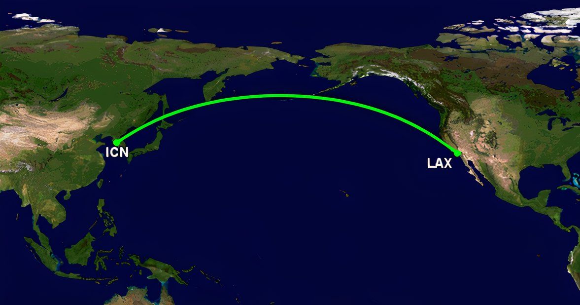 A Asiana é uma das três companhias aéreas que operam entre Seul Incheon e Los Angeles, ao lado da Air Premia e da Korean Air.VelaDiio diz que Asiana atende a rota de 5.209 milhas náuticas (9.647 km) duas vezes ao dia.