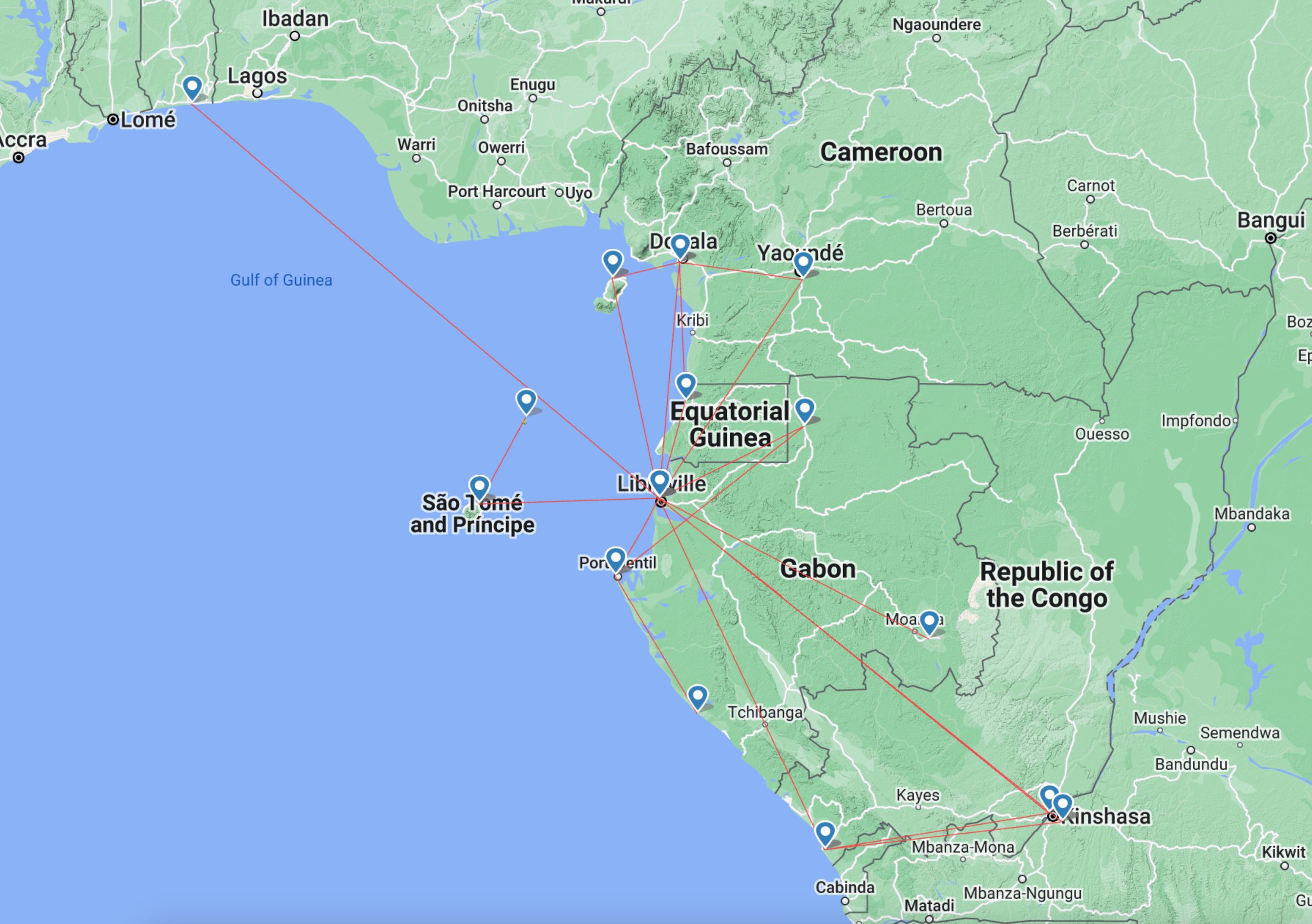 A recém-formada FlyGabon oferece voos acessíveis, mantendo as comunidades ligadas em todo o Gabão, com os seus dois ATR 72-600, operados pela Afrijet. De acordo com o Flightradar24, a Afrijet opera a seguinte rede de rotas: