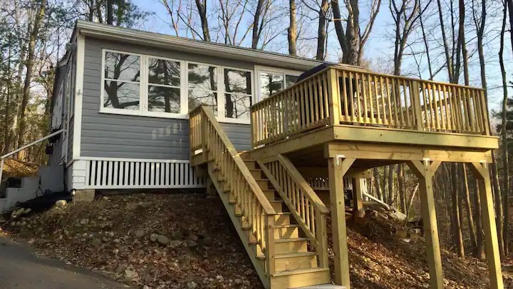 Localizada a apenas trinta minutos de Boston, esta é a seleção de chalés de outono mais acessível da lista. O celeiro está localizado próximo à casa principal do anfitrião, o que significa que pode não ser o melhor para quem busca total privacidade.