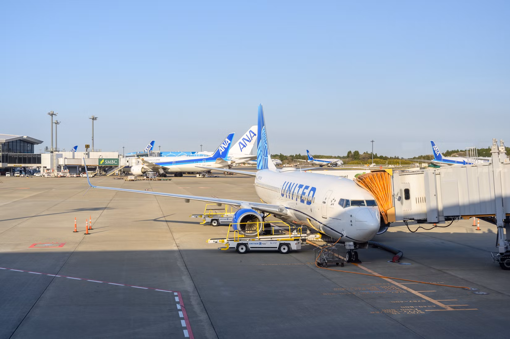 Aeronave da United Airlines em manutenção, estacionada no portão de passageirosCrédito: Shutterstock
