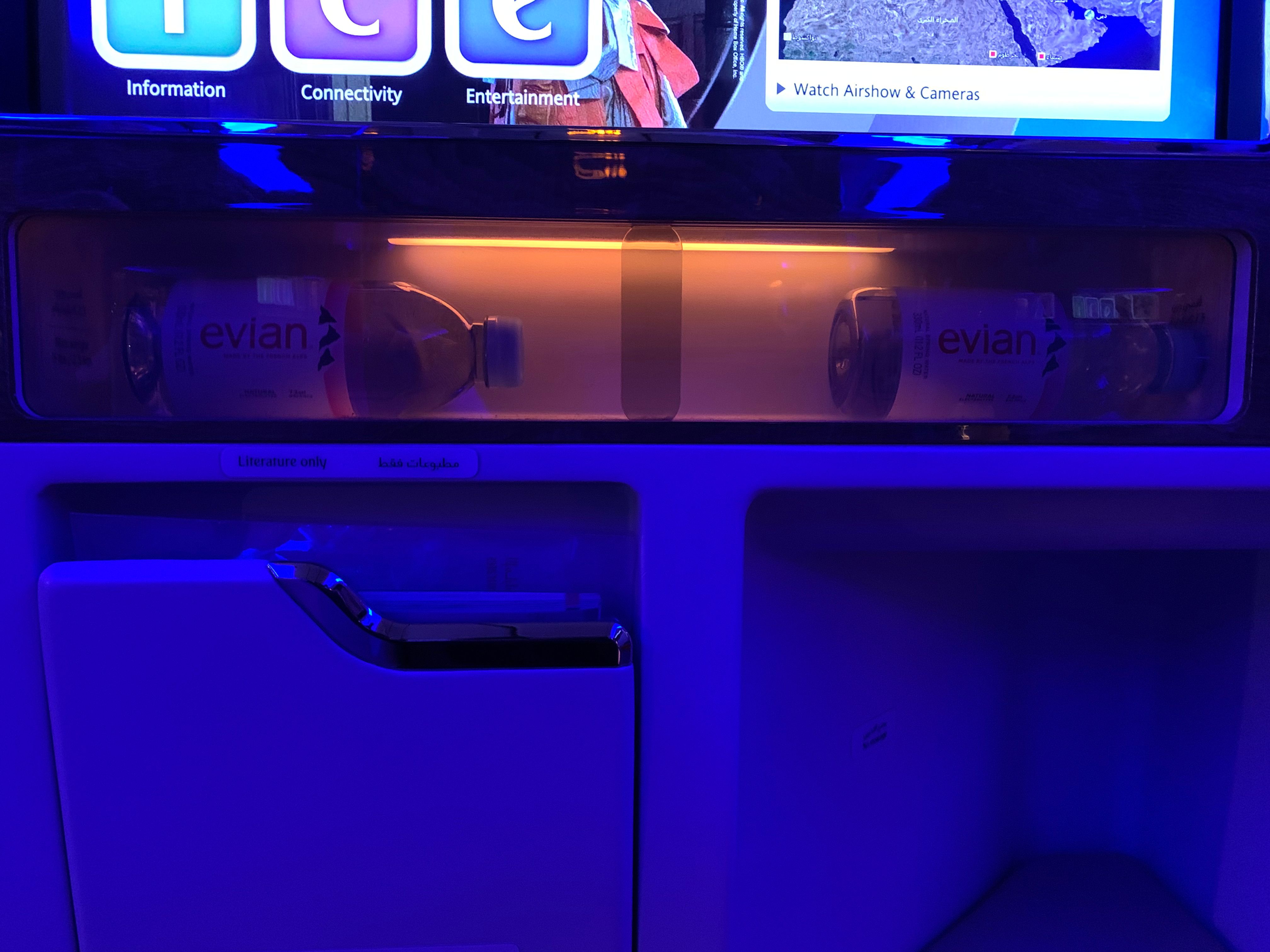 Uma mudança significativa na nova cabine é que os frigobares pessoais agora estão em cada assento abastecidos com um copo de vidro, duas garrafas de água Evian, uma garrafa de Perrier e duas latas de refrigerantes. Esse é um recurso que já existe nos assentos da classe executiva dos A380 da companhia aérea. No entanto, a mudança mais significativa é a aparência dos assentos. Com o novo design, o assento e o ambiente parecem mais elegantes, confortáveis e luxuosos.