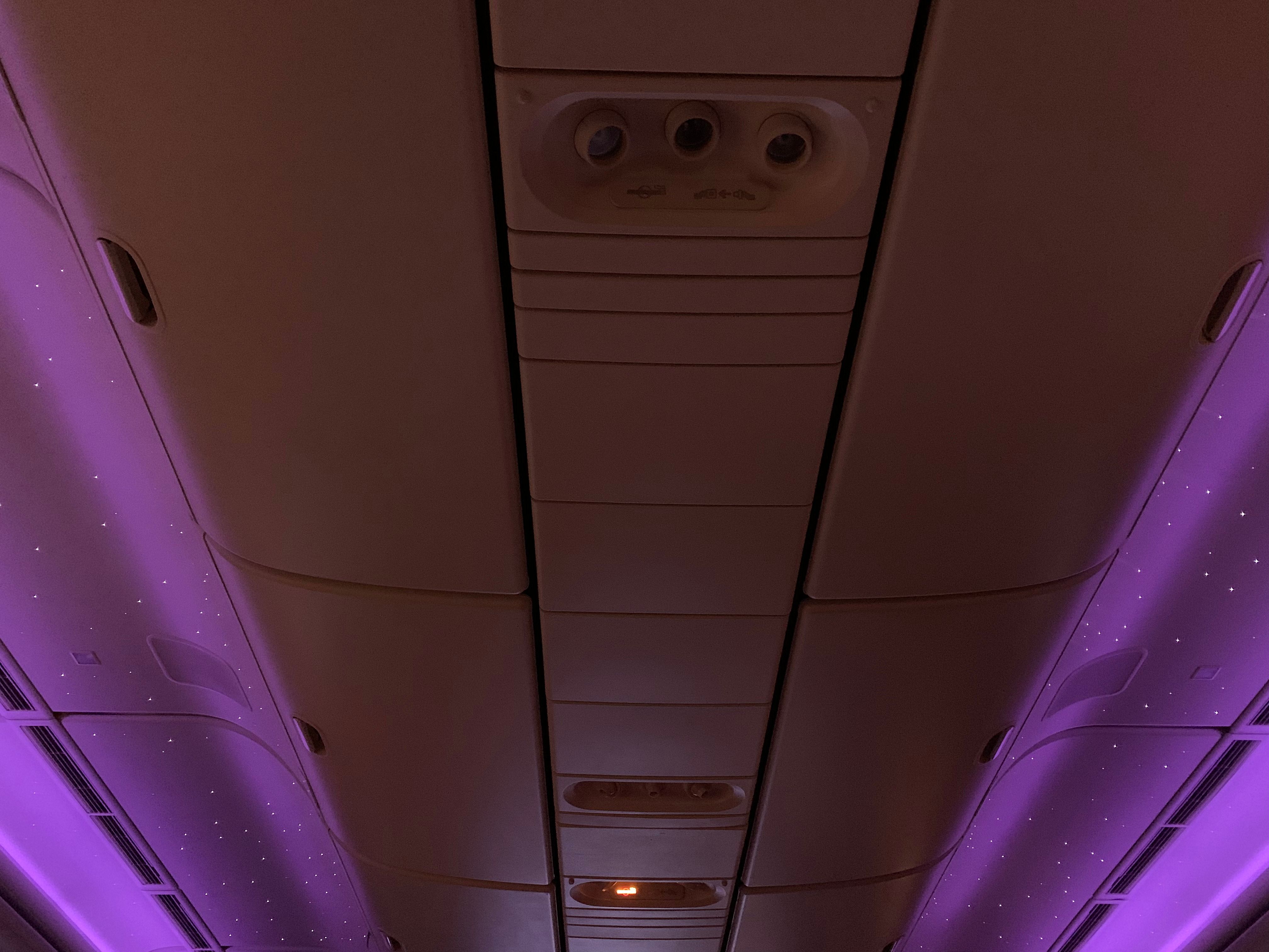 Cada assento possui seu próprio bocal de controle de temperatura e luzes de leitura. No entanto, há também uma luz de leitura lateral em cada assento.
