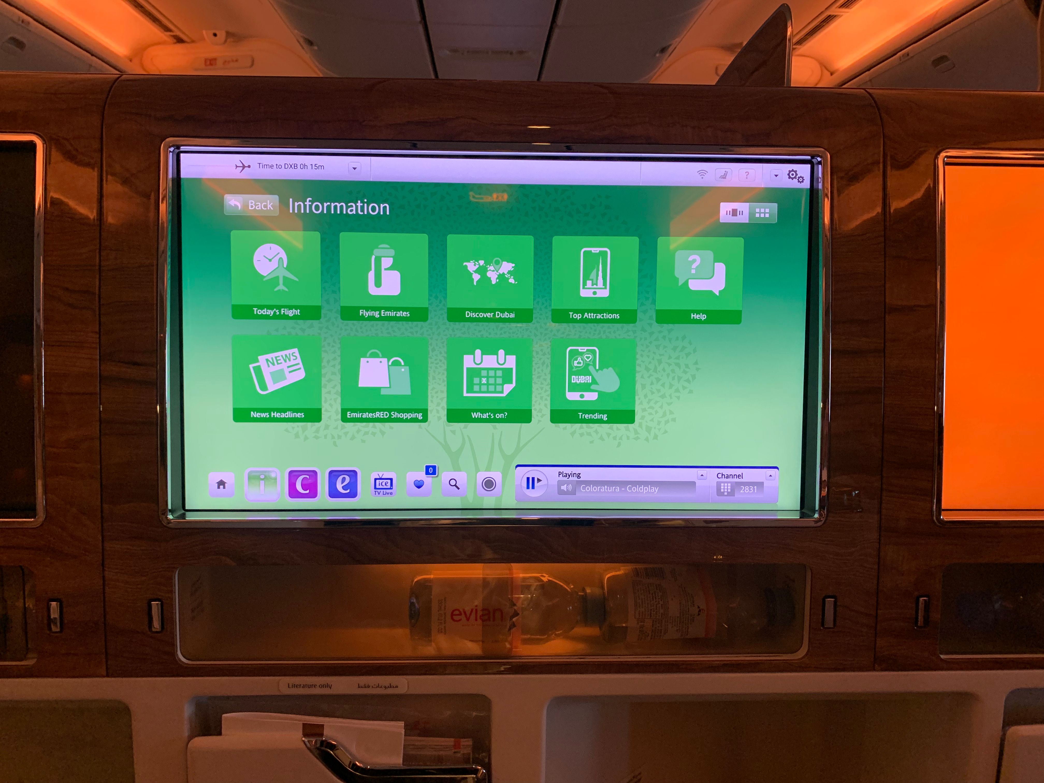 Além disso, na tela do IFE, os passageiros podem visualizar informações sobre a Emirates, sua rede de rotas, seus serviços e sua residência em Dubai. Os passageiros que voam para DXB também podem visualizar informações de conexão de voo antes de chegar, o que é um serviço útil, considerando que a Emirates opera um modelo hub and spoke. Informações como números do carrossel de bagagem também são fornecidas.