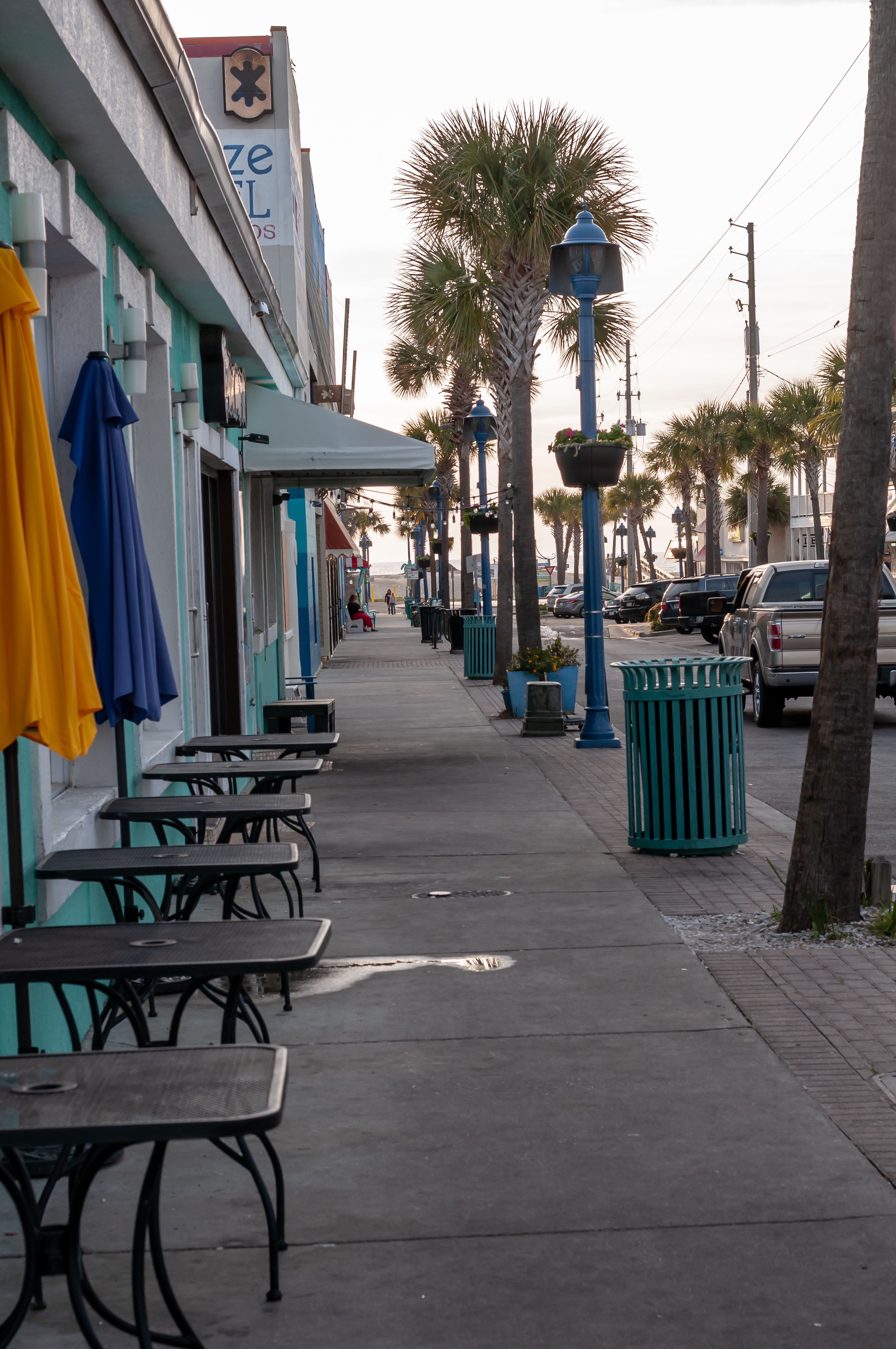 Vista da rua principal de Tybee Island, Geórgia, EUA
