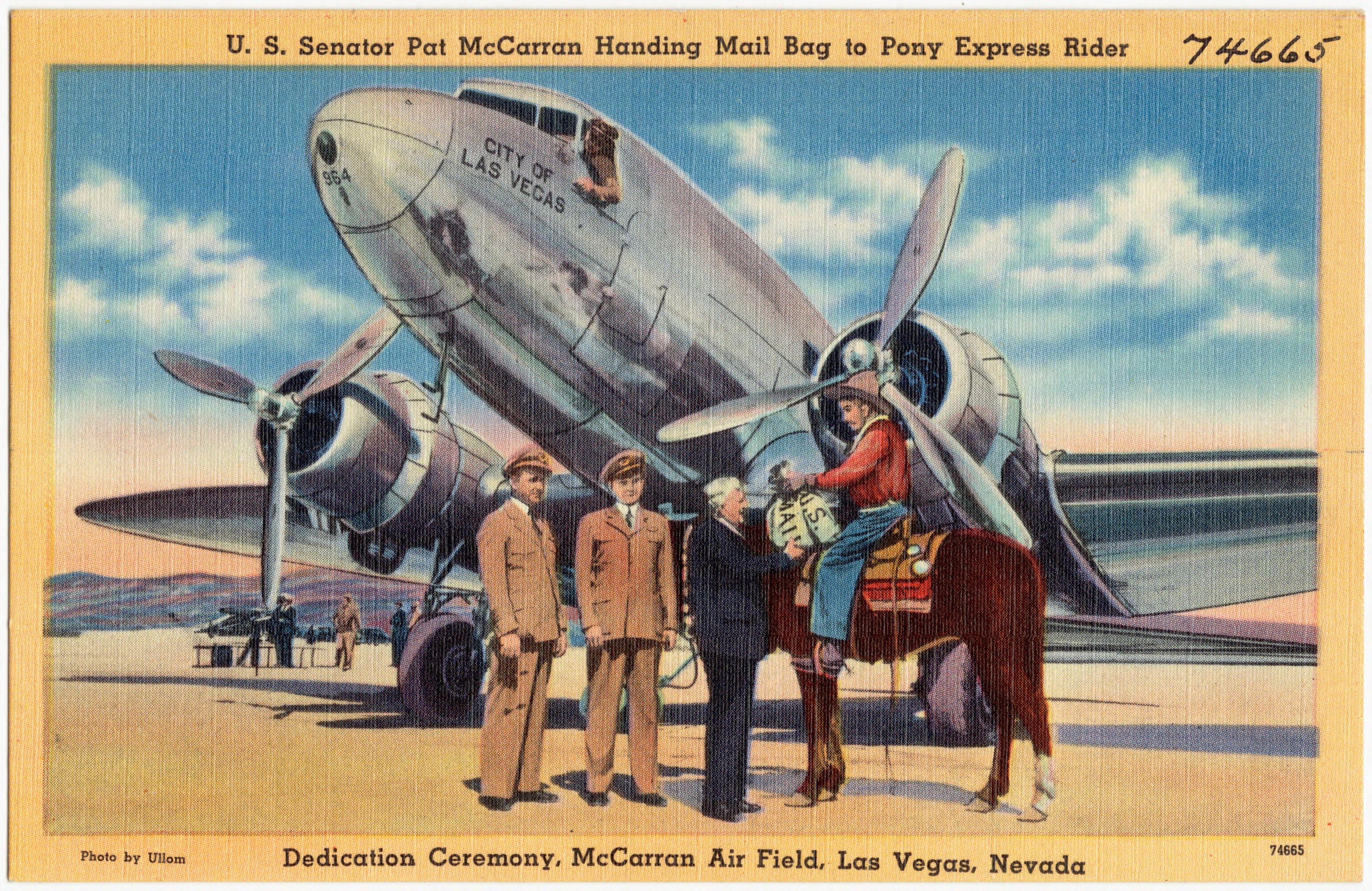 Patrick Anthony McCarran foi um político democrata nascido em Reno, Nevada, em 1876. Ele desempenhou um papel significativo na formulação da legislação relacionada aos primeiros anos da aviação comercial, patrocinando leis como a Lei da Aeronáutica Civil de 1938 e a Lei do Aeroporto Federal de 1945. Ele defendeu a separação das Forças Aéreas do Exército dos Estados Unidos em uma Força Aérea independente, iniciando a legislação em 1933.