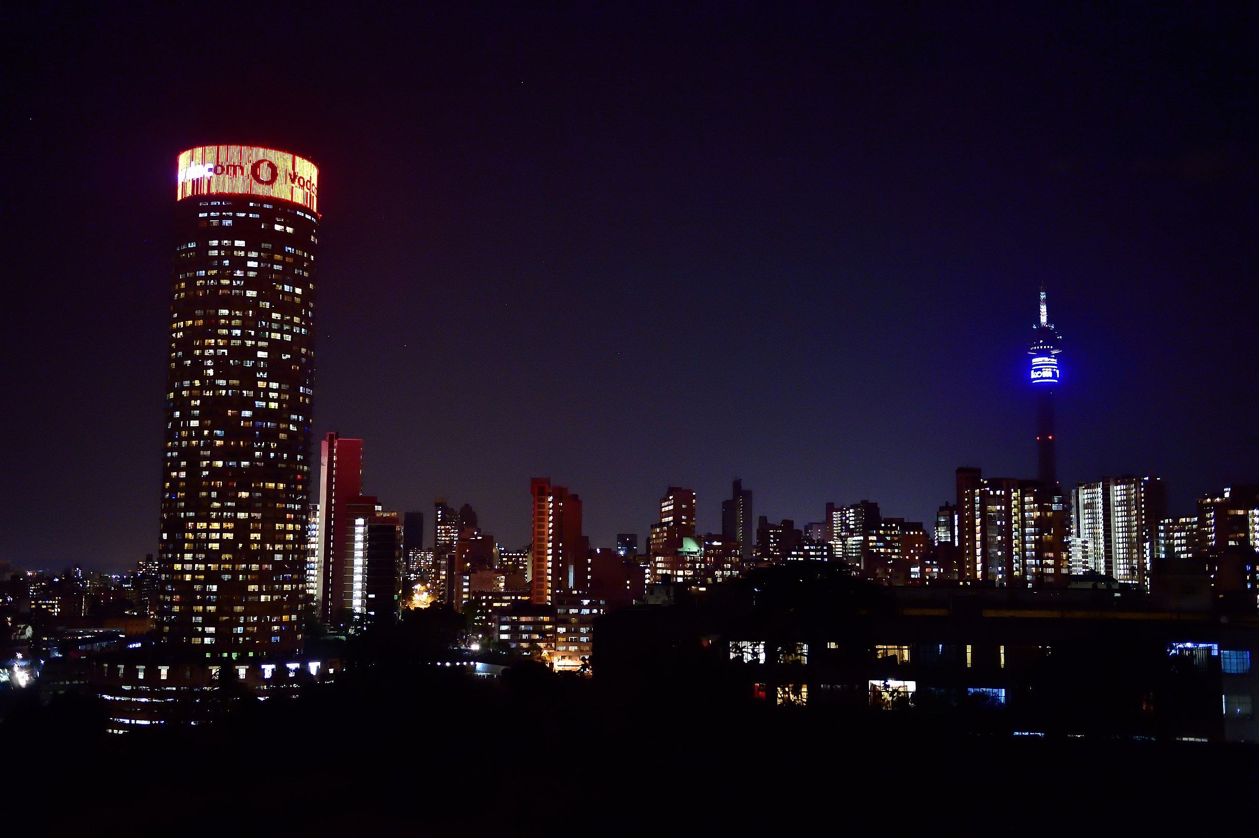 Ponte City Apartments, paisagem urbana de Joanesburgo à noite