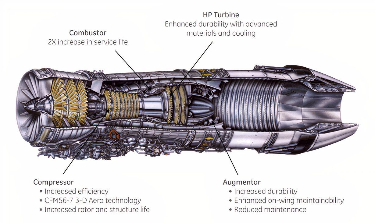 , é um ventilador de pás integrais de três estágios que é alimentado por uma turbina de baixa pressão de estágio único. O poderoso e compacto compressor de alta pressão apresenta aerodinâmica avançada de aerofólio e discos de rotor com pás integradas, proporcionando durabilidade sustentada.