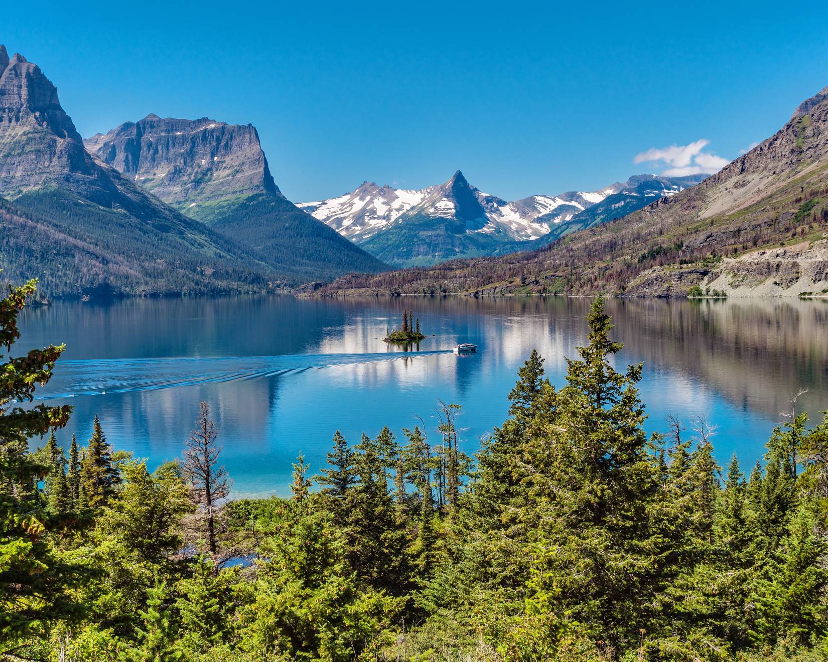 Ilha WIld Goose em St. Mary Lake, Parque Nacional Glacier, MontanaCrédito: PVminer2/Shutterstock