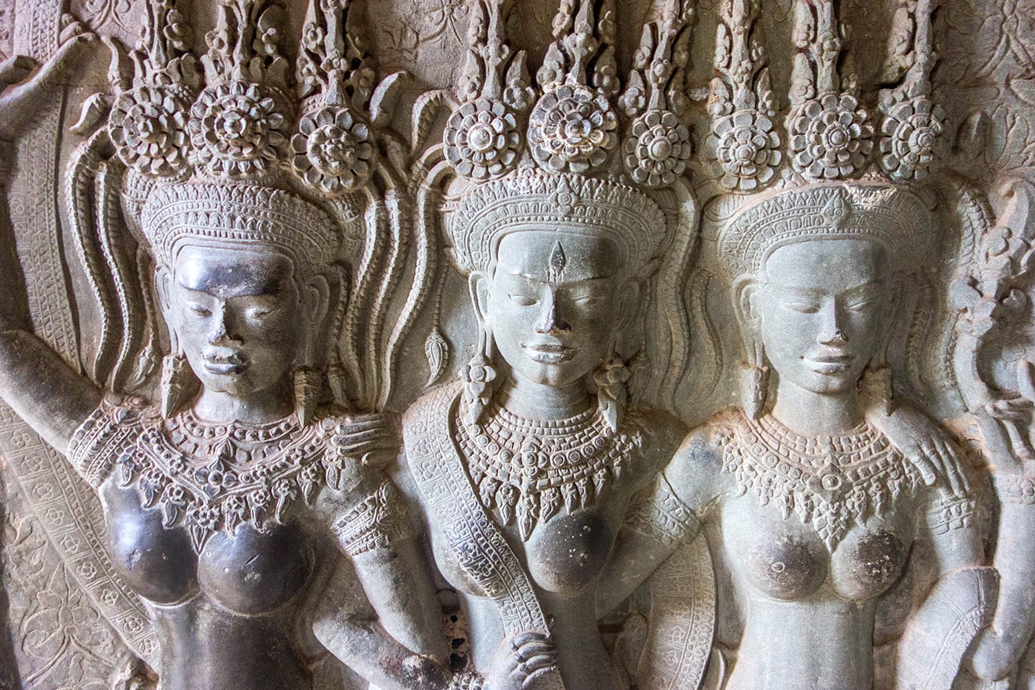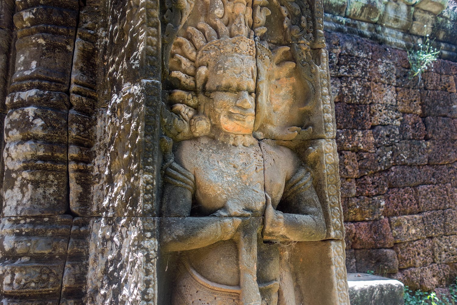 Seguindo a longa passarela de arenito, você desviará para uma das entradas laterais do coração do templo. Dentro das paredes, você verá uma série de terraços, cada um com uma galeria ao redor. Essas galerias apresentam esculturas grandes e ornamentadas e baixos-relevos que contam histórias da mitologia hindu. No topo encontra-se um terraço contemplativo com quatro galerias que conduzem à torre principal do templo, que tem no centro um santuário a Buda.