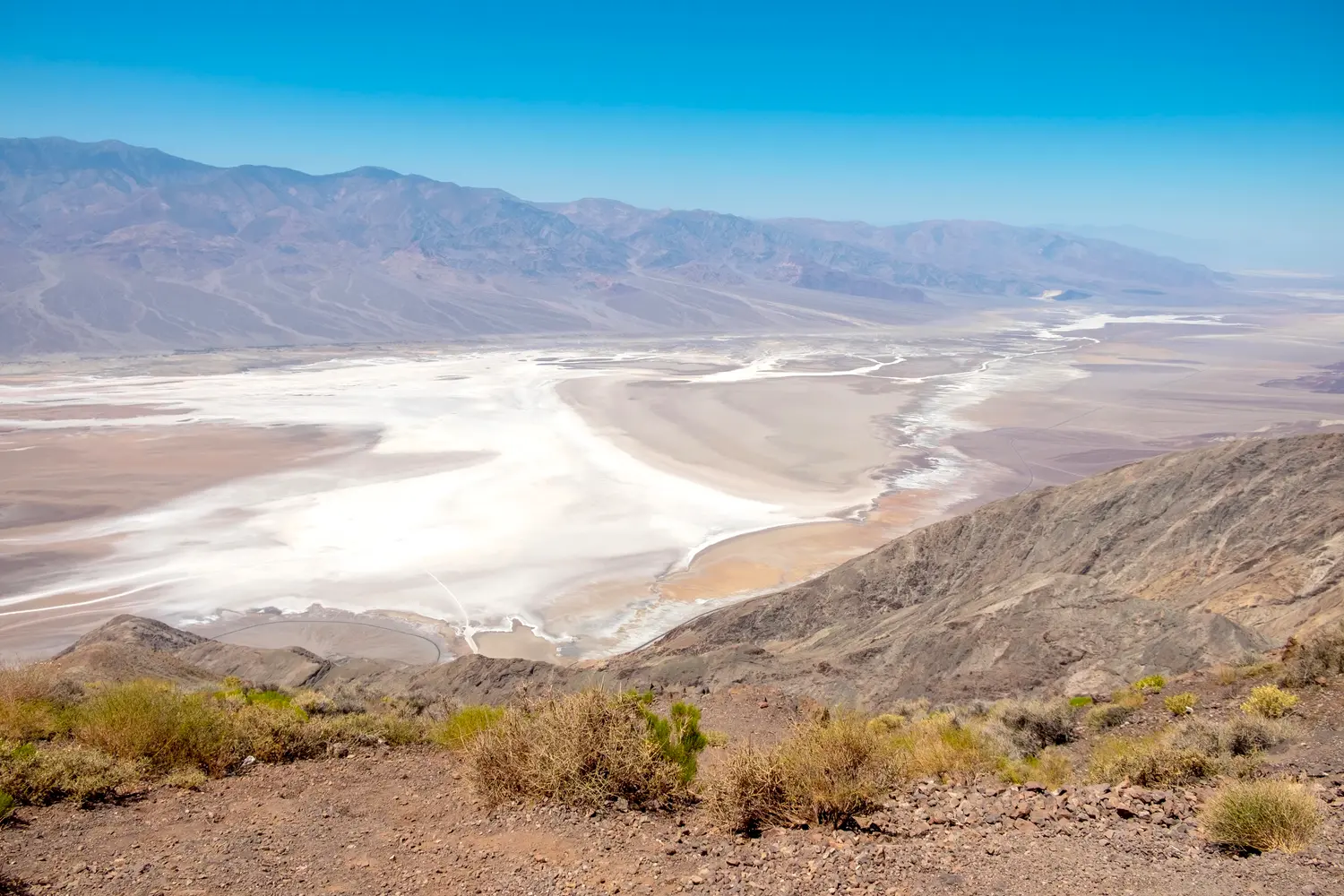 - Visão de Dante:Um dos mirantes mais emblemáticos do parque, oferecendo vistas deslumbrantes da Bacia Badwater e da Cordilheira Panamint a 5.475 pés acima do fundo do vale. É uma caminhada curta e pavimentada – cerca de 20 minutos de ida e volta. Recomendamos fazer isso primeiro para evitar as multidões.