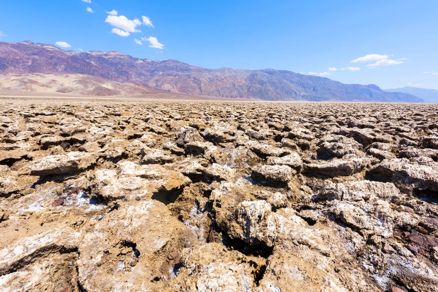 - Campo de golfe do diabo:Uma área de formações salinas surreais e recortadas. Recebeu esse nome porque, segundo ex-trabalhadores do parque, “só o diabo poderia jogar golfe aqui”. O local é facilmente acessível pela Badwater Road, com uma curta caminhada de 5 a 10 minutos a partir da área de estacionamento.