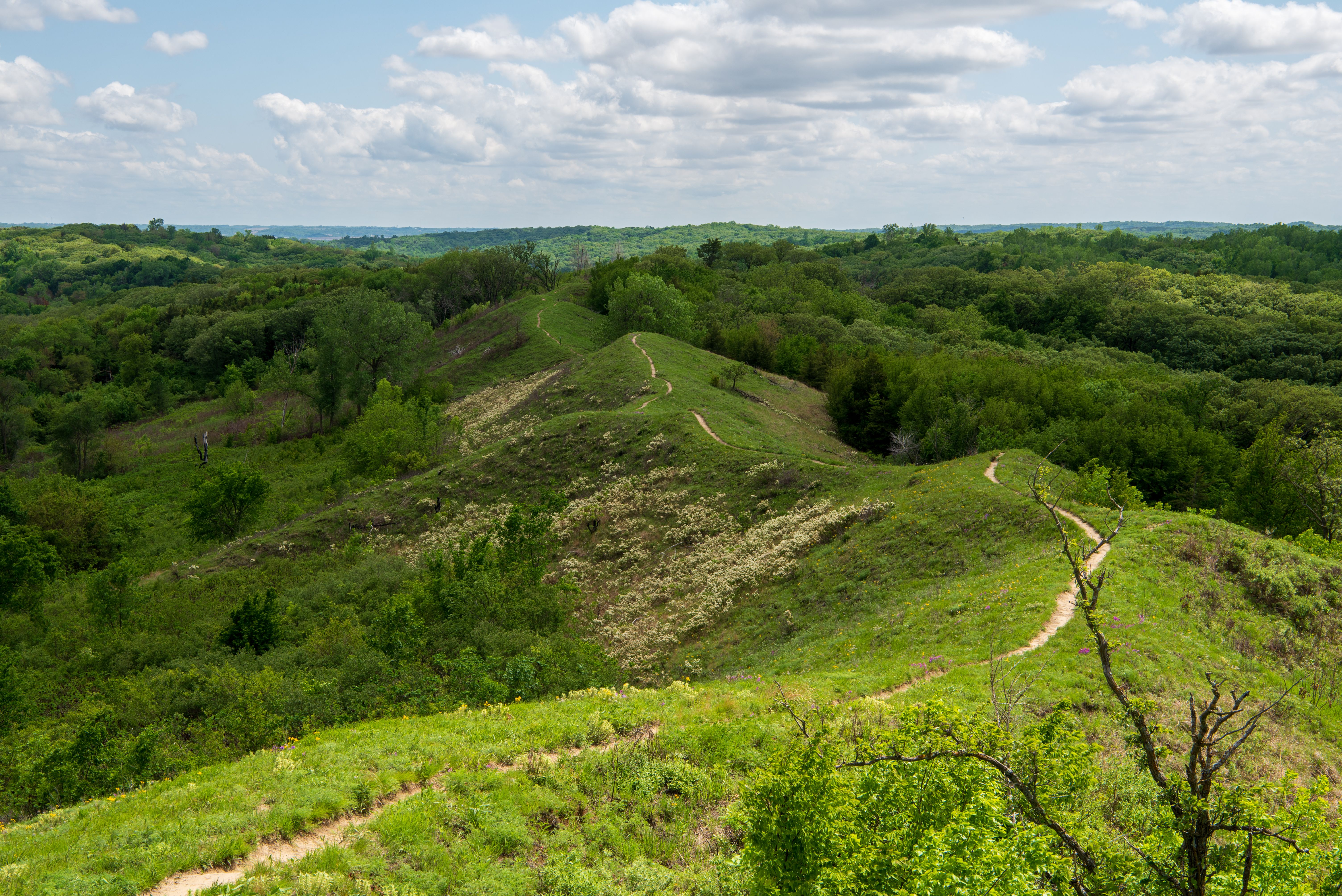 Adornadas com florestas de carvalho e nogueira e grama da pradaria, as Loess Hills estão situadas nas áreas mais a oeste de Iowa e Missouri, a leste do canal do rio Missouri. Anteriormente chamada de Iowa Scenic Byway, a rota encantadora que recebeu o nome desta área única foi oficialmente designada como aCaminho panorâmico nacional de Loess Hillsem 2000.