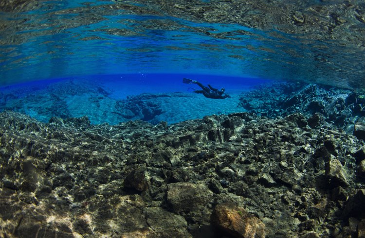 Mergulhando na fissura Silfra. Crédito da foto: iStock