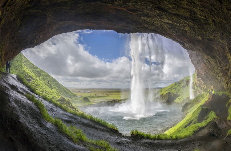 A Islândia apresenta cachoeiras deslumbrantes de todos os tamanhos e descrições, mas em Seljalandsfoss, no sul da Islândia, você pode realmente caminhar atrás da cortina de água.