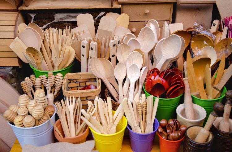 Utensílios de madeira à venda em Tahtakale. Crédito da foto: Getty Images/yunlutas