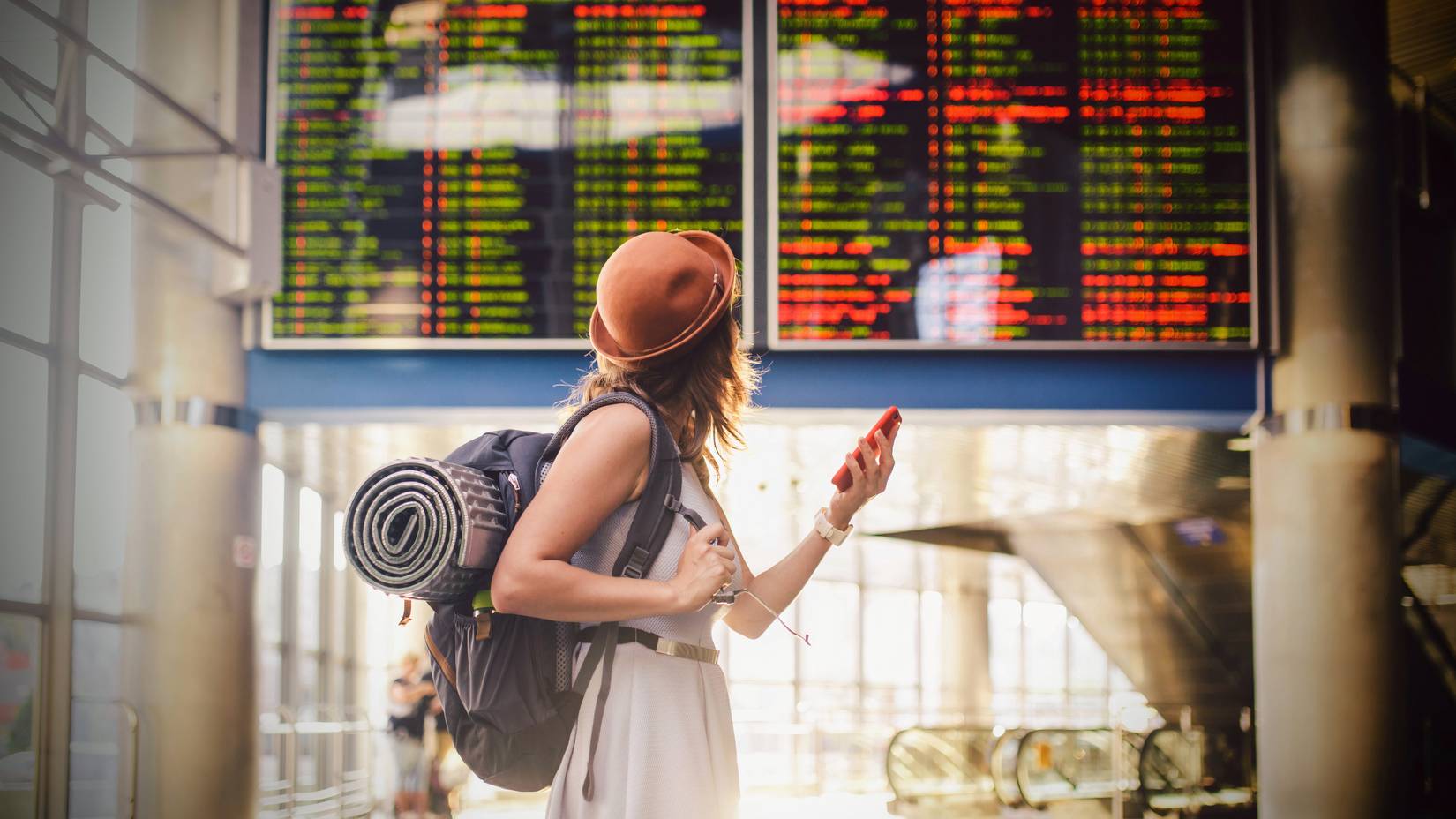 Viajante solitário em um aeroporto