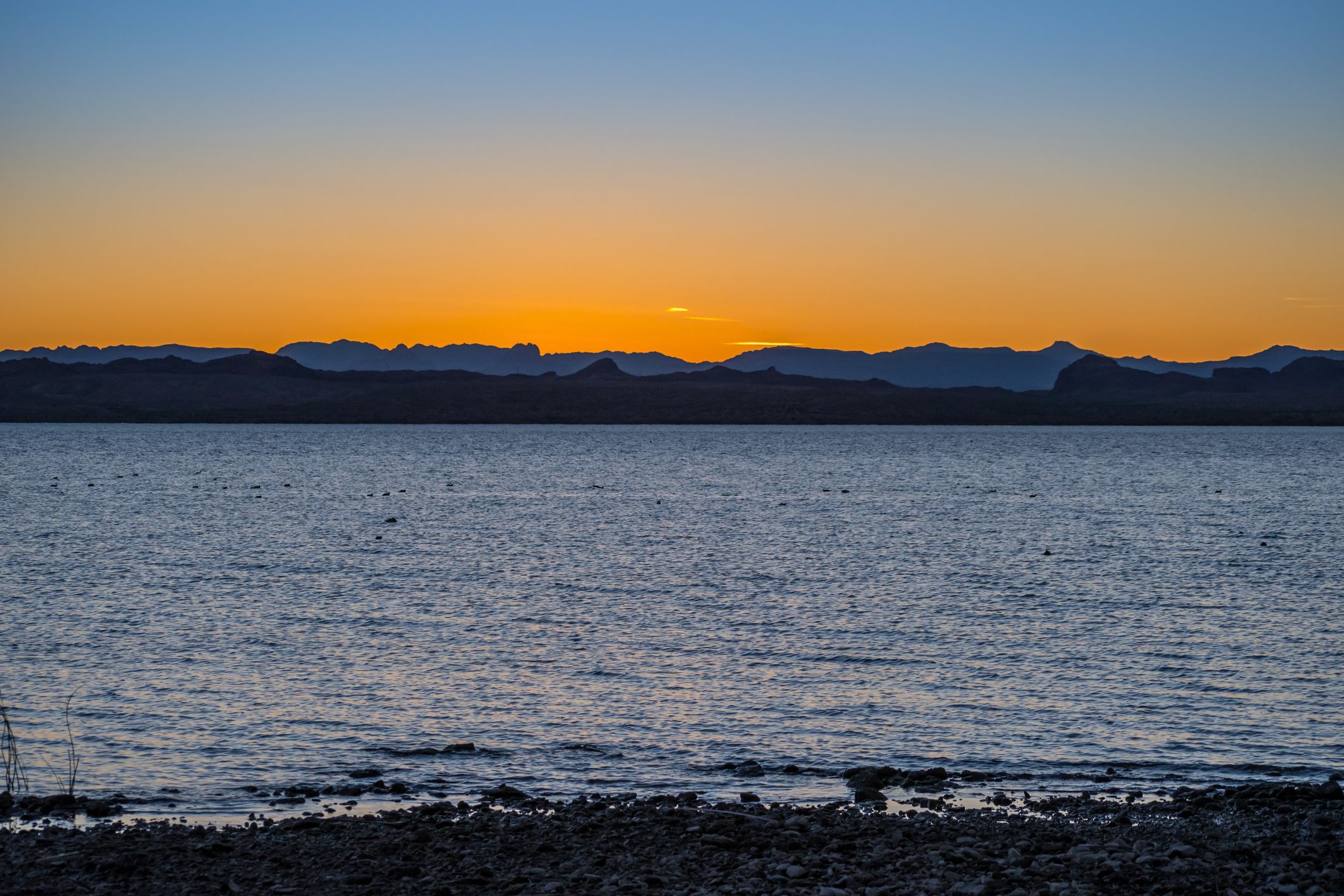 Paisagem colorida de um belo pôr do sol com vista para Windsor Beach, Lake Havasu, Arizona