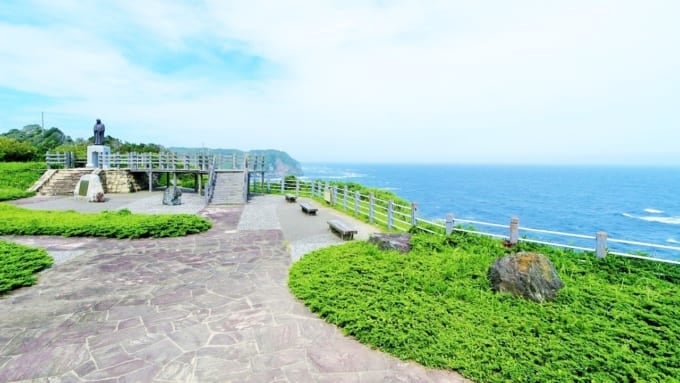 A cerca de 20 minutos a pé do Mercado Matinal de Katsuura, na ponta de Hachimanmisaki, fica o Parque Hachimanmisaki, que já foi o local do Castelo de Katsuura. Do mirante você pode desfrutar de uma vista magnífica do vasto Oceano Pacífico!
