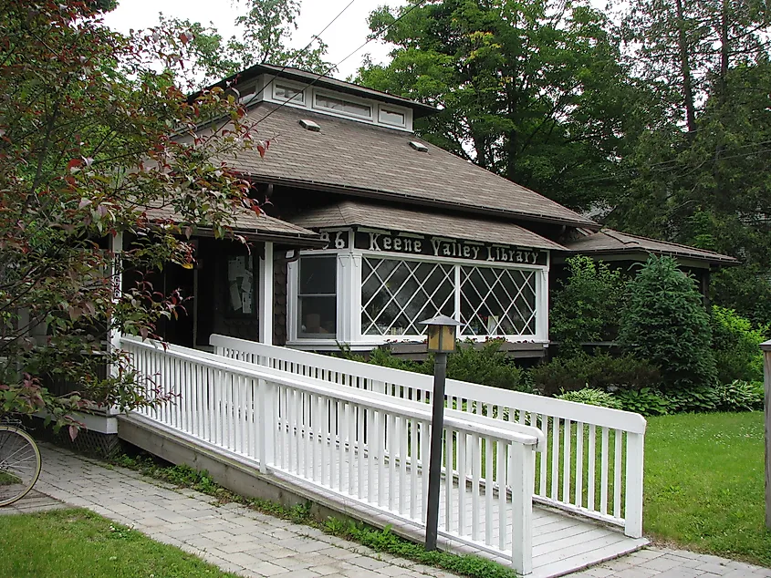 A Biblioteca Keene Valley perto de Keene, em Nova York. Por Mwanner – Trabalho próprio, CC BY-SA 3.0,Wikimedia Commons.