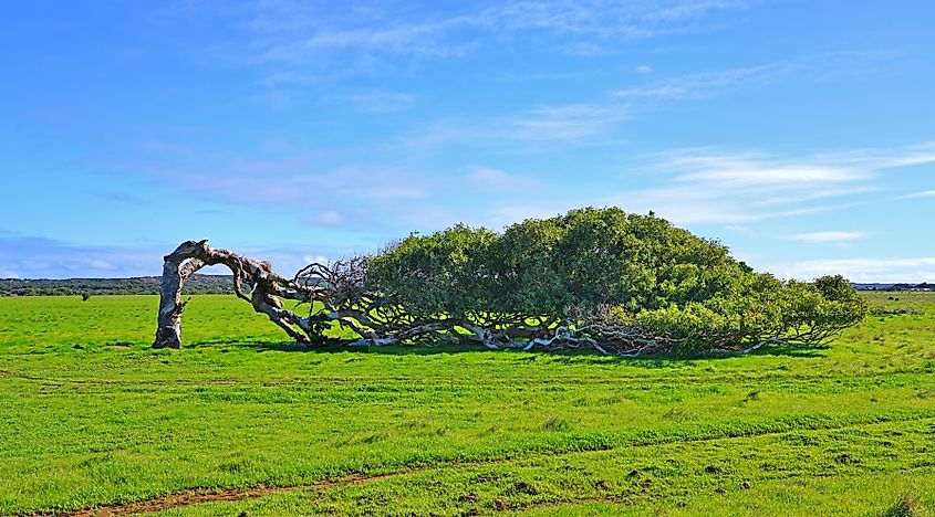 Uma das árvores inclinadas perto de Greenough, Austrália Ocidental.