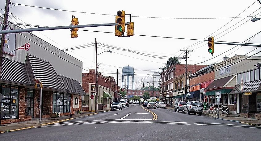 Main Street no centro de Oak Hill, West Virginia. Crédito da imagem Tim Kiser (w:User:Malepheasant), CC BY-SA 3.0 US, via Wikimedia Commons