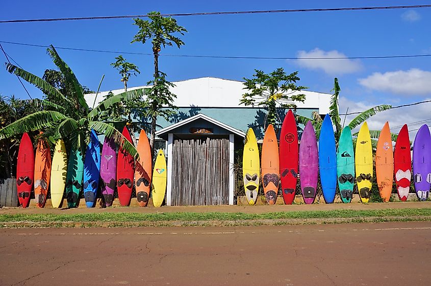 Surfistas, iogues, hippies e amantes da praia migram para Paia por suas vibrações boêmias. Você reconhecerá Paia por sua fileira de pranchas de surf em arco-íris dignas de fotos do lado de fora do Aloha Surf Hostel, e a cidade fica mais colorida a partir daí.