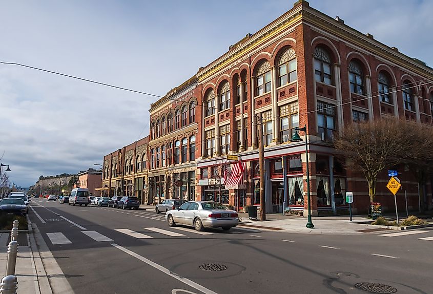 Edifícios rústicos no centro da cidade de Port Townsend, Washington. Crédito editorial: Angela Dukich/Shutterstock.com
