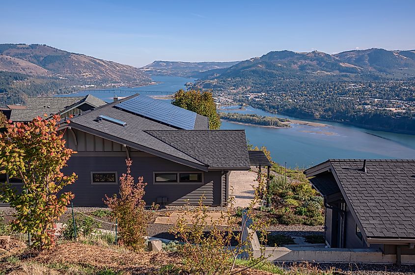 Vista do Rio Columbia e da cidade de White Salmon em Washington.